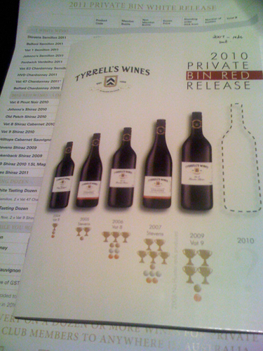 As ever all these wines are available only via the Tyrrell’s Private Bin (club) or via the Tyrrell’s cellar door. Private Bin prices are listed below (More information here. Geez I deserve to be on the Tyrrell’s payroll – Chris Tyrrell I’ll take payment in some of those 09 Vat 9 Shiraz magnums :)).