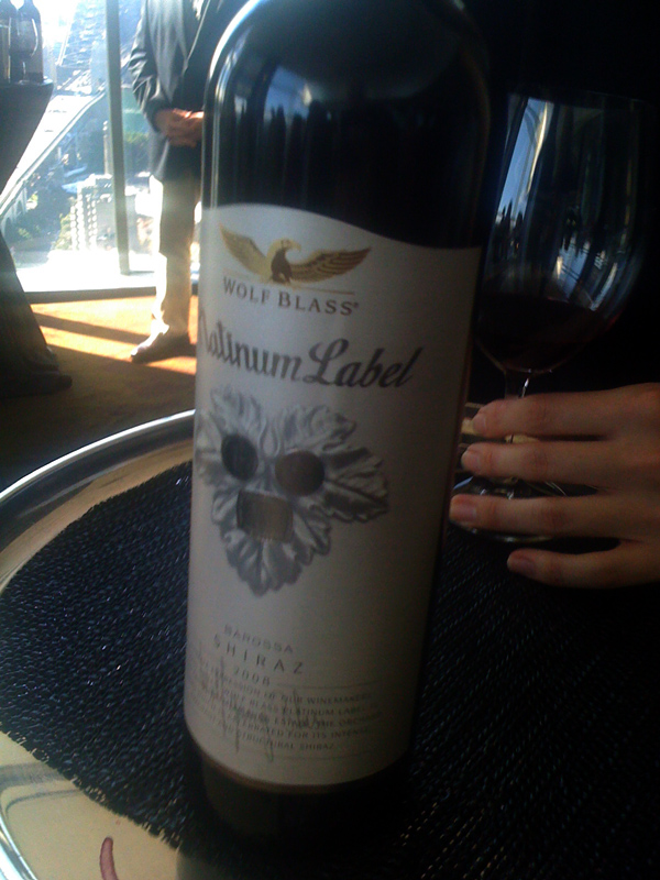 | Wolf Blass Platinum Flashy. That’s Chris Hatcher standing in behind there (in front of the view of the bridge). |