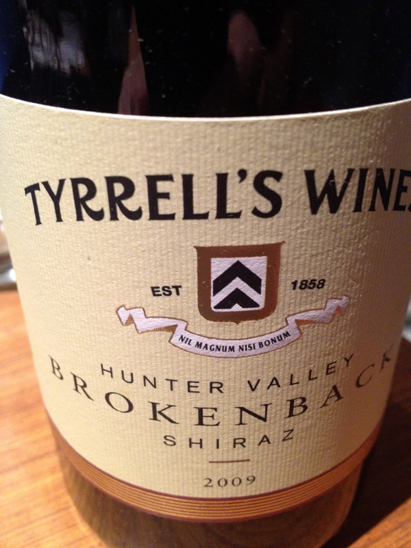 That wine is the 2009 Tyrrell’s Brokenback Hunter Shiraz, a lovely unforced Hunter red, from a very good vintage, that typifies all that I like in the ‘drinking’ (not trophy winning) style of Hunter Shiraz. It’s hardly an expensive wine, nor is it all that rare, but I have some purely because I enjoy drinking it.