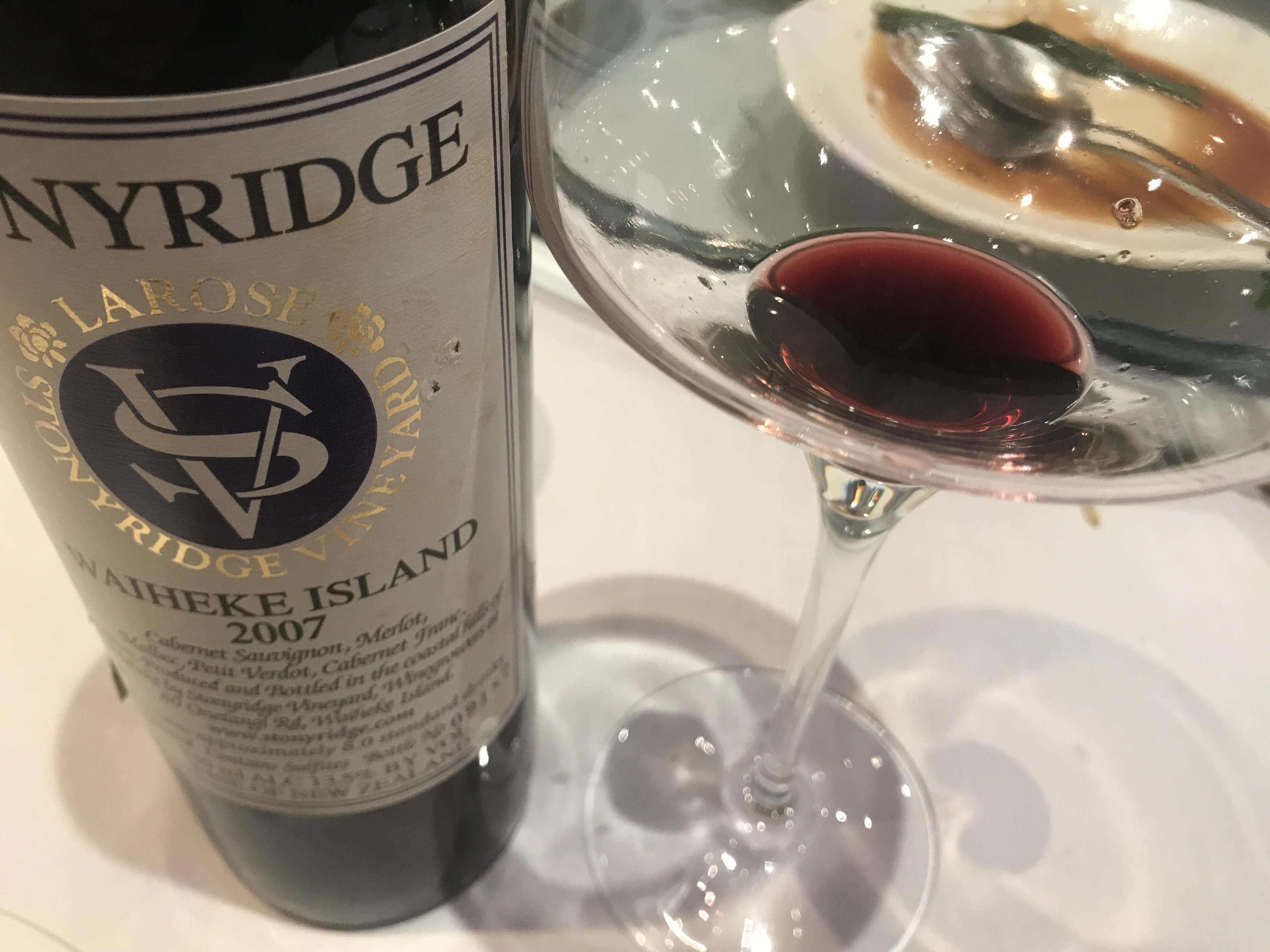 Wow. So red, so exuberant. A head-turner. Cab, Merlot, Malbec, Petit Verdot, Cab Franc. Magnificent. Like a good young Bordeaux, even at 12. A little oak propping up the nose, along with pencil shavings, red meat, dark leathery hints, mint, ripe fruit. Ageless tannins. It’s cedary Bordeaux, but with this plump polished middle. Mid weight, cedary, plenty of acid. It’s not claret, it’s Waiheke. Energetic. Magnificent. Best drinking: Now and hey whenever. Will be a very very long term wine. 19/20, 96/100. 13.5%, $ I paid $60 or $70. Which looks unbelievable now. Would I buy it? Glad I have another bottle and some 05.