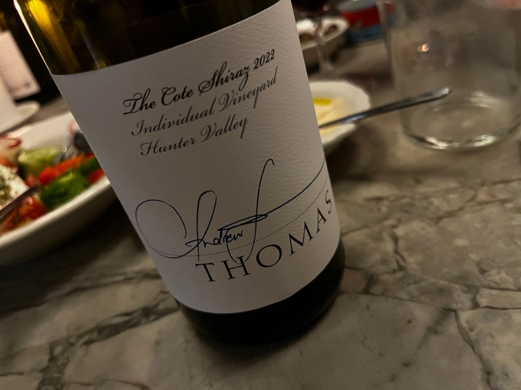 I don’t go to many evening wine events anymore, partly because there are fewer of them (RIP wine media), but mostly because feels like an extension of a wine work day. But this was different. Thommo and I were born on the same day (different years), and we’ve spent enough time at Sydney Swans games (#GoSwans) for me to know that an evening with Thommo is typically entertaining and full of honest takes on the Hunter Valley (and his wines).