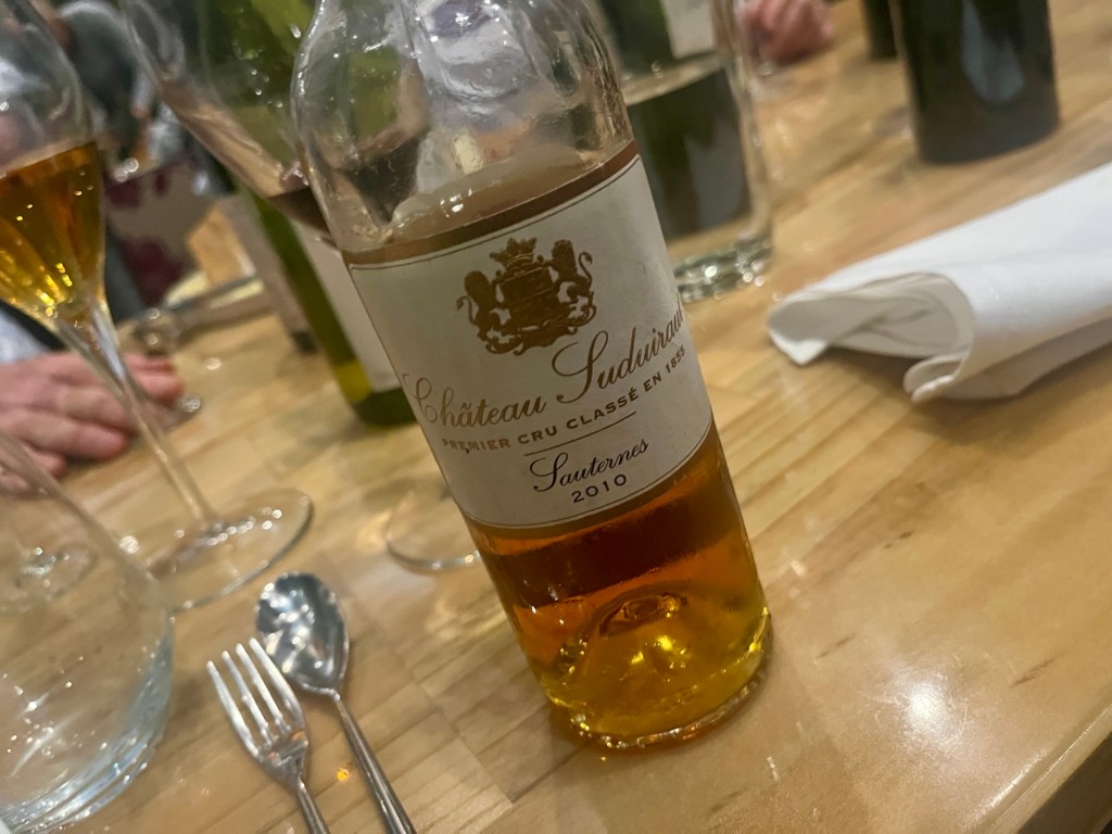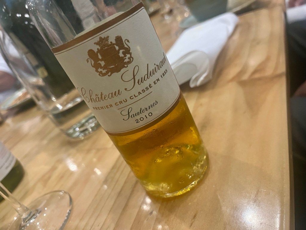 ‘One of these wines is doing it’s own thing’. More correctly, two of the three half bottles of this Chateau Suduiraut Sauternes 2010 weren’t doing the right thing, looking advanced and caramelised, the spectre of oxidation killing the interest. The final bottle of the three, pictured in the second bottle image, was a different beast altogether – lightly honeyed, all candied orange peel and toffee with lusciousness and beauty. You can see it in the colour – one liquid is brownish, the other more golden yellow. That fresh bottle was absolutely delicious – a wonderful, fully mature, complex Sauternes of the absolute top shelf. I’ve experienced this sort of variability with older Suduiraut before (I had a six pack of ’89 that was like an orange colour chart), and you have to ask questions about the corks. No, Meat Loaf, 2 out of 3 is real bad (especially for Sauternes like this), but if anyone gets a good bottle of 2010 Suduiraut, it’s a hallmark Sauternes.